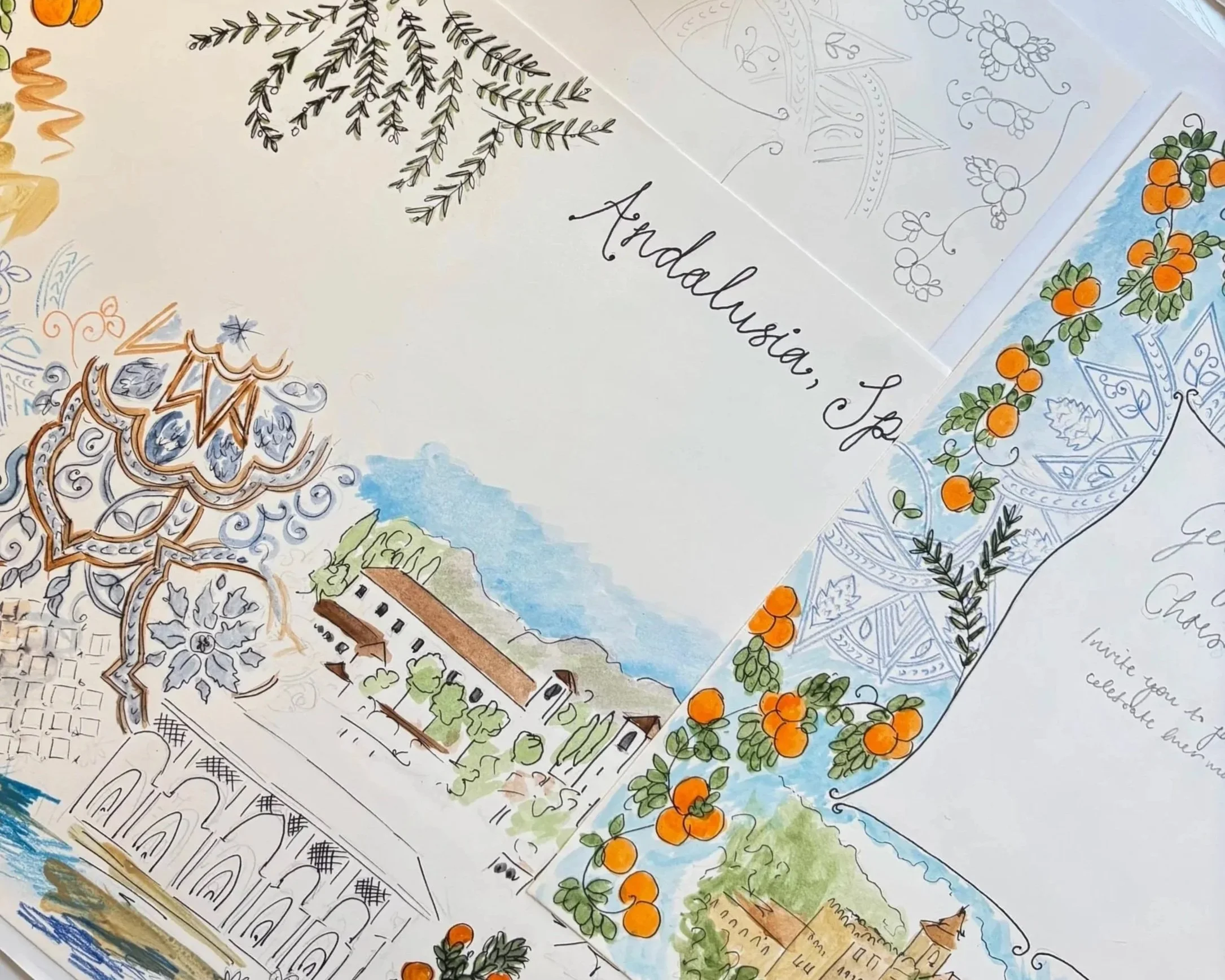 Hand-painted, fully bespoke invitations inspired by your wedding destination.